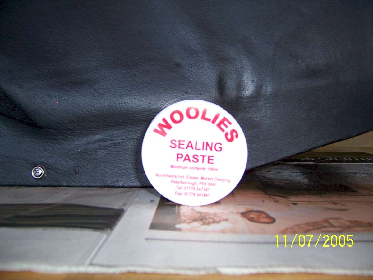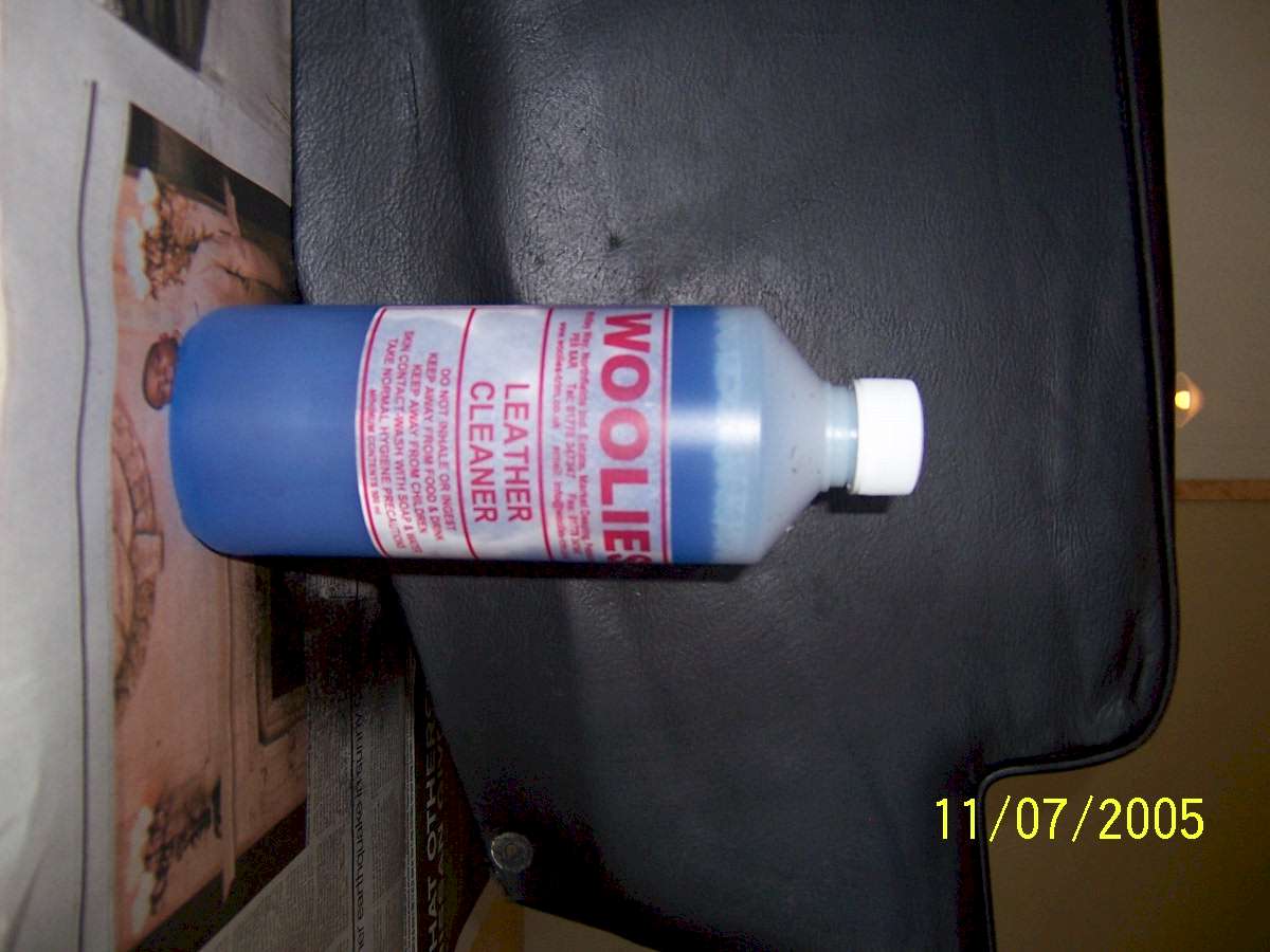 The interior of 136-8779 was starting to look a little tired, and as the cost of a full re-trim would make the Sultan of Brunei's eyes water, a restoration seemed to be the answer. Jensen owners on the British Steel e-mail list had recommended 2 restoration kits. The first is the UK based company Woolies, the other is the US based Leatherique. Both kits come highly recommended, with the Leatherique kit coming out slightly in front. The main advantage of the Leatherique kit is they make a crack filler paste, which Woolies do not. That would be useful for badly dried out leather with deep creases. As I am UK based, and was looking at having the badly creased or split panels recovered, I went for the Woolies kit. They actually make a "Jensen Kit", which is enough for the large amount of leather in a Jensen. Owners on the e-mail list also recommended 2 other items for the restoration: