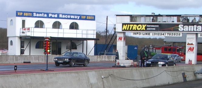 Here is 136-8779 leaving the starting line at Santa Pod drag strip. Even with the lowered MK2 front springs, note the nose high stance under heavy acceleration! The car as it currently looks
