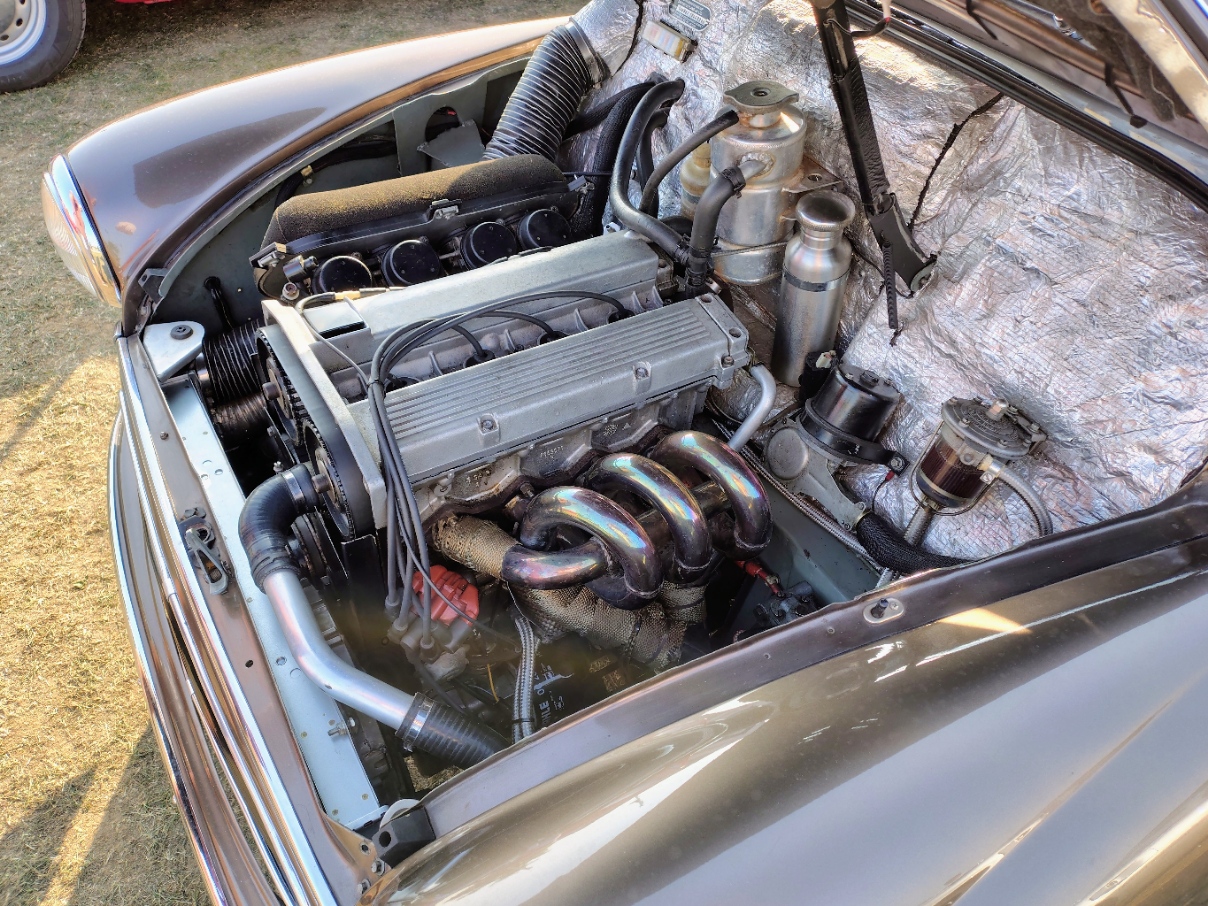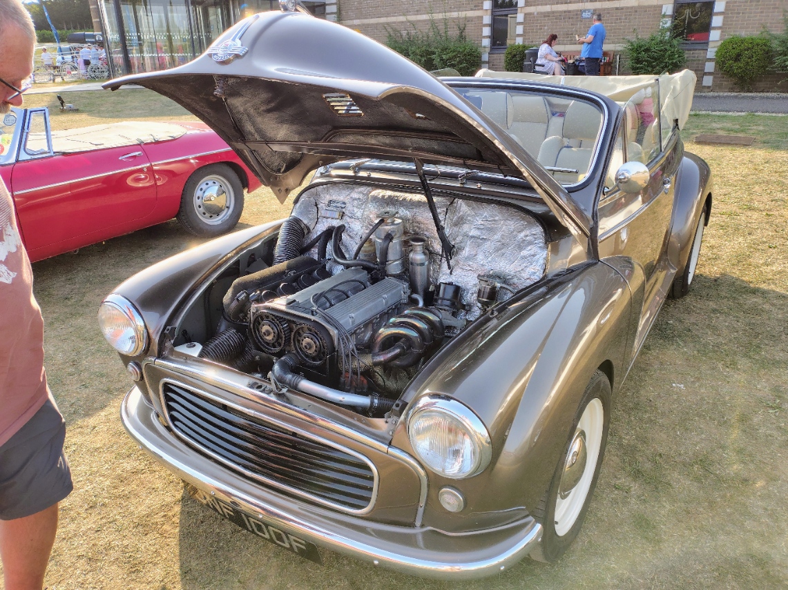 The monthly classic car meeting at Gaydon Motor Museum had come around again, so Steve Payne, Chris Miller and me decided to have a meet up and a night out. It happened to be on the hottest day of the year, and ironically, part of the reson for the meet up was to discuss with Steve about recommissioning my air con system, so it was a HOT 61 mile drive to the venue! I had degassed the system to remove the engine for the engine rebuild, and hadn't recommissioned it incase the engine had developed a fault and needed to come out again. As it's been a few years and miles, and all is OK, it's time to put it back together again. Once there I was guided to a section of the event I haven't beed to before. The same happened to Chris and Steve, whereas we normally park together.