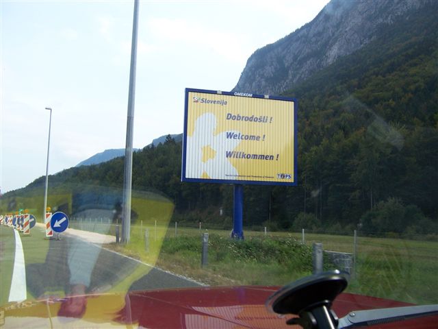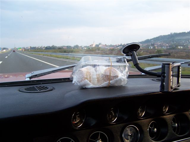 Top Touring Tip 2: Don't sit on someone else's wad. Our early morning ritual, along with oil/water checks and re-stocking the victuals bag, was to check the tyre pressures. We knew the satnav wouldn't be much use in Eastern Europe but when we set it for Belgrade in Serbia it just said "Your destination is in a restricted area" it may have well said "there be dragons" for all the use it was going to be today ! However we did use it each day to record our longitude-latitude so we'd have some location info to send home and also to the British Steel mailing list. Today's journey from Ulm, Germany to Belgrade, Serbia was the longest single leg of the whole trip. About 680 miles, crossing four national borders. We didn't expect much hassle crossing from Germany into Austria but didn't know what to expect about the rest of the route which would take us through Ljubljana in Slovenia, then Zagreb in Croatia and finally into Serbia. As we were cruising quite nicely (we aimed to stay at 3,400rpm which was more or more around the motorway speed limits of most European countries (130kph/83mph) I decided to do some in-flight adjustments to the mapped ignition timing; we settled for 58deg advance at cruise which seemed to suit the car well - especially on German 100 octane fuel... That was Germany then, gone in a flash, and now it's all looking a bit alpine - must be close to Austria then, that's Vignette country. Click here for a video of the car in the Alps Unquotable quote: "What's the German for plastic bag?" (read the article of a plastic bad taking out Steve Payne's rear axle in Scotand) We stopped at the last petrol station before the Austrian border - along with about a million other people - I guess the fuel in Austria is either expensive or crap (or maybe both, we never got to find out as we passed through without stopping). We were blocked in at the pumps which was a bit scary as this twat from Italy was smoking whilst filling up his car with petrol ! Having filled the car it was time to stock up the victuals, here's Kerry with the grin of a man having consumed four mars bars. You'll also see our box of home-made cake, courtesy of my wife Elspeth (more on that later...). So with car and drivers refreshed we hit the road again. Spotted this sign, which was nice: We thought it meant no lorries in the outside lane (cool !) but apparently it means only red lorries are allowed in the outside line - plus anyone in a hurry and anyone with one of those cute Vignette stickers, best 10 Euros we ever spent - ye-ha ! Whilst researching our route (ok, ok, so we glanced at a very old map, went down the pub and declared it sorted) we found this: Karawankentunnel it seemed like a good idea at the time 'cos it saved driving over the mountains... What our in-depth research failed to uncover was that for 364 days a year it's actually only one lane wide (the other 1 day it's shut) with a one-way stop-go queue at either end, starting in Belgium and ending in Japan ! Here's a picture of the queue after we'd sat for about an hour: We thought, naively, that it wouldn't be too much longer as there was a coach coming through from the other side - turned out it was running out of diesel and had turned around in the queue and was heading back home. We finally realised we were in for a bit of a wait when the family in front invited us to their roadside BBQ ! Anyway, we finally got to the front of the queue: Actually it was quite impressive, 7.863 km of pristine tunnel and then one slightly worn sign being attended to by about ten earnest workers with clip-boards - well worth the wait then - I'd have hated to drive through a tunnel with worn signage.. Unquotable quote: "It's a conflux of countries" So, this was it then, the Austrian/Slovenia boarder - we're leaving safe old "Euro Zone" for uncharted waters - we'd never been this far from home by car before, and it turns out to be... well, what a welcoming place although the eagle-eyed amongst you will have spotted the traffic cones (our unwelcome friends for the next 48 hours - more on that later) - and the eagle, eagle eyed will have spotted the reflection of Kerry in the windscreen shouting "Watch out for the cones" - a portent of things to come on the Eastern European "motorways". As it turned out Slovenia passed without any fuss - more like northern Italy than Eastern Europe, Ljubljana is the capital: disappointingly civilised - they even have cycle lanes: We had planned to see Ljubljana - there's a "Green Dragon Bridge" that's apparently worth a mooch but having lost so much time admiring Austrian tunnels we decided to press on to Zagreb in Croatia - just a simple border to negotiate first. So here we were, rocking along nicely, good weather and a nice straight road - we'd even cracked open the box of Elspeth's tasty cakes as we came up to the boarder.