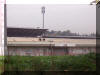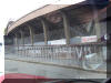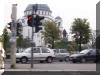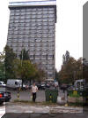 We decided to just stay on the main road (E70) and skirt around Zagreb as time was getting on and we had to cross all of Croatia and about a third of Serbia before getting to our scheduled overnight stop in the capital Belgrade. As soon as we'd passed by Zagreb we started to see signs for Belgrade, which was good as this was about half way through today's 680 miles. And then this happened: One of the twin belts that drives the A/C and alternator decided it had just had enough and jumped off the front pulley. Luckily it didn't actually snap and it didn't take out anything vital on its way. As we had two spares and as the engine was too hot anyway we decided to cut the old belt off and just continue with one. Although we had two spares with us it was only day two and we didn't know if one belt would be ok so we decided to call up reinforcements. We 'phoned Steve back in Blighty to check he had spares in stock and he managed to get them boxed up and into the post the following morning - more on those in the following "Istanbul pages". Anyway, it all seamed to be working ok with just one belt even with a full electrical load and the A/C running flat out (the A/C compressor had been upgraded to the Sandon type which puts much less strain on the belts than the older V-twin type). We pressed on into the night and then, suddenly, it was only 100km to Belgrade, we were actually going to make it - and we did ! Finding the hotel in Belgrade was surprisingly easy but as it turned out the fan belt incident did cost us our dinner that night - the restaurant closed at 11pm, about 2 minutes before we arrived, so there was nothing for it but to relax in the bar and light up a fine Cuban. So far a total of 1,619 miles (2,605 km), not bad for two days motoring. Eventually the hotel bar closed so we set off to find our room; this picture doesn't really do justice to the relentless drabness. There were 14 floors of this, plus one for the staff quarters, that didn't have paint on the walls or carpet on the floor so in the end we felt lucky to even have a room. When we finally got to our room - it promptly fell apart, apparently you're not actually meant to open the door, it's just leant there to stop next door's wall falling in. Kerry is in the "fire business" (putting them out not lighting them!) so we had to stop and stare at this. From the state of the cracked hose and from what we could tell from the label it was last serviced in 1973, which had a certain symmetry with some Jensen's. When we first arrived there was a TV show on which seemed to consist entirely of two women sitting down and talking - about four hours later we switched on the TV in the room and they were still going strong - and it seemed to be on every channel - so that was our lasting memory of Belgrade TV. In the morning the hotel looked much better (inside) - you could see it was actually faded grandeur - it had been a senior apparatchik's hang-out in the old (communist) days so was actually quite well decked out - except for the lift system, you could hear the wailing of people stuck on the fourth floor (we had been warned) as we made our way up the stairs to the fourteenth floor breakfast room. I've never had meatloaf for breakfast before but as this was our first proper meal for a while we got stuck in anyway. Actually the fried bacon was absolutely fab and set us up grand for the day ahead. Whilst fettling the car outside the hotel Unquotable Quote: "oh dear - we seemed to have scratched the thin veneer of civilisation" for the day ahead we met a Belgian chap who seemed to be a cross between a businessman, a secret agent and a second-hand car salesman. He wouldn't let us take his 'photo but did dispense some valuable advice for English people travelling abroad - pretend you're Scottish ! Outside the hotel was much commotion, the police were out stopping the traffic - this seems to happen just by blowing a whistle at which point everyone drives for the nearest pavement - just before a convoy of five Hummers (http://www.hummer.com/) came roaring around the corner - driven by plain-clothes types with machine guns hanging out the windows. It was later in the day when we passed a court-hose building surrounded with TV crews covering the trials of ex-leaders from the Balkan conflicts I guess this is when we realised we were actually in central Europe proper. From now on we also started to see quite a lot of classic cars and also classic car bodges, such as the old "screwdriver holding up window trick" We decided to take a turn around down-town Belgrade before leaving for Istanbul No visit to any town would be complete without a tour of the local football teams beaten by the glorious Man United, luckily Belgrade has two "Red Star Belgrade" and "Partisan Belgrade" Here's the Red Star's shop and stadium I was surprised how close the two clubs are together within Belgrade; must be interesting when both are at home, here's the Partizan stadium: There were actually quite a lot of nice buildings in Belgrade, here's one: Time was pressing on so we decided to head out of town - not as easy as we'd thought. Most of the main roads out to the motorway had been dug up but nobody had bothered changing any of the road signs so every road out of town seemed to end up in an abandoned building site. After driving around for a bit (more on that later) we stopped to ask directions and two blokes got into a fight (luckily between themselves) about which knew the best route. Kerry also asked a policeman - I'm not sure what "bugger off" is in Serbian but we got the message and drove for the hills at the start of: Go To Day 3 (Belgrade to Istanbul) - "Jensen 1 - 0 Bulgarian Rozzers"