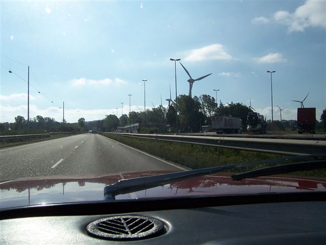 We entered France just after 6am, on a bright, warm sunny morning. This was going to be good! I took the helm of 136-8801, gave it a boot full, and we were on our way. Only 4750 miles to go. The drive in France was short but sweet and we were soon into Belgium. Belgium is the beer brewing capital of the world and it was a tough decision not to drive into the nearest beer cafe, get blind drunk for 2 weeks and Photoshop the pictures (I know the German's and Czech's also claim the title of being best brewers, but sorry lads. Get your self a glass of Westmalle Triple and you'll see my point of view) Belgium soon rolled into Germany, and we were surprised to see how wholeheartedly the German's had adopted wind turbines. There is a huge debate in the UK about the merits and de-merits of wind power (usually regarding how the turbines affect the look of the countryside), but to my eyes they didn't look to unsightly, and surely the environmental benefits must out weight the negatives? Answers on a post card to... Chris had previously lived and worked in Germany, and at dinner the night before had mention a popular national dish called "Schwein Haxe" (sorry to our German readers if the spelling is incorrect). It sounded fantastic, and as luck would have it, it was on the menu at the services when we stopped at for lunch.