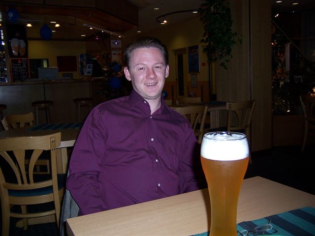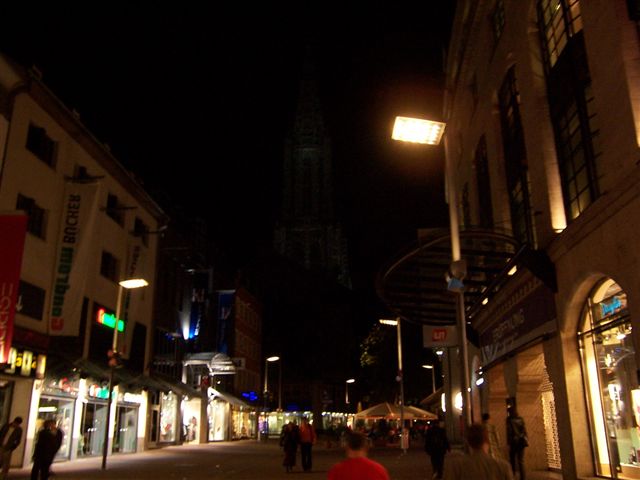 We had heard that German Jensen owner Patric Albutat was hoping to meet up with us, and so we gave him a call and arranged to meet. Going for "a pint" sounds so much better than "fancy 565 millilitres?" It turns out Patric had driven 6 hours and 385 miles to meet us from Berlin, and so we decided to make a night of it and go for dinner and a few beers afterwards. He had brought his rather tasty MK3 with him, and we took some pictures of the car. It was very dark and the flash camera not only gives poor light, and in no way does justice to Patric's car. It turns out Patric is a writer, and we were hoping he might write this for us, but he modestly declined! Unquotable quote: "... those are really woody woods." I hadn't realised how bad the flash was on my camera till I took a look at these pictures, but here a shot of "downtown" Ulm (what exactly is "downtown"?) After a dinner of tapas we headed to a busy pub for a drink. By pure co-incidence my mate Simon was on his way to Bulgaria to see his mum, so he met us in the pub and took this picture of me, Chris and Patric. He also brought packets of the Black Country delicacy, pork scratching, which Patric has now tried and pronounced; "The most disgusting stuff I tasted so far, utterly awful. Much worse than Marmite! Do you think I could make them send me some? Haven't been able to source it locally or over the internet" A little cultural exchange between