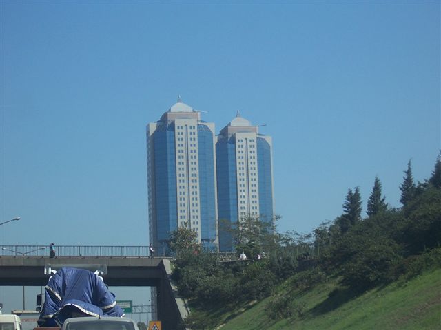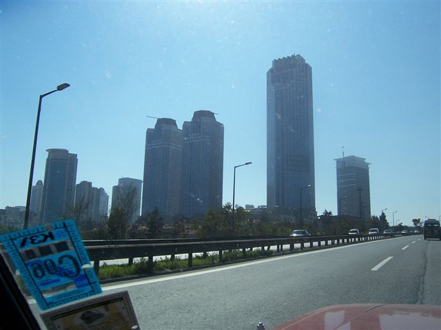 We had previously moved the coil to the air filter box to try to cure the noise, but so far no joy. After a bit of a head scratch and a chin stroke, we concluded it was the Delta fan controller Chris had fitted which was injecting noise into the stereo. As we didn't have any big capacitors to suppress it, we decided there was nothing for it but to turn it up louder to drown the whining noise! Unquotable Quote: "It's a polyphonic syncopation fault..." Istanbul is a huge, sprawling place, and everywhere you can see for miles around there are house and buildings. After being in the old town, we headed into the more modern business side of the city, with some impressive sky scrapers. Some times the old and the new made uncomfortable bed fellows. Unquotable