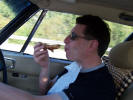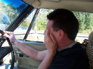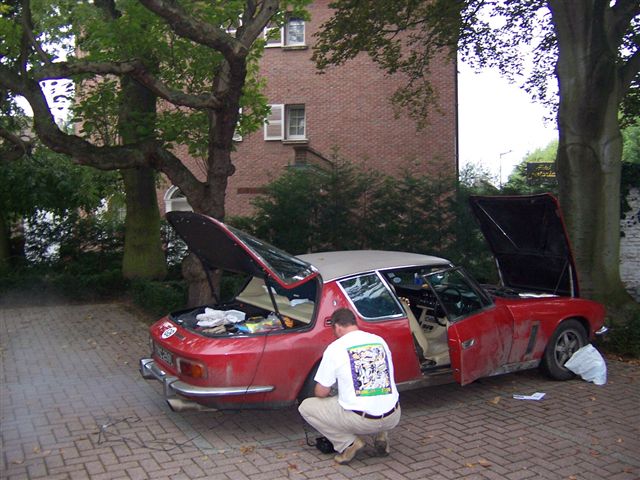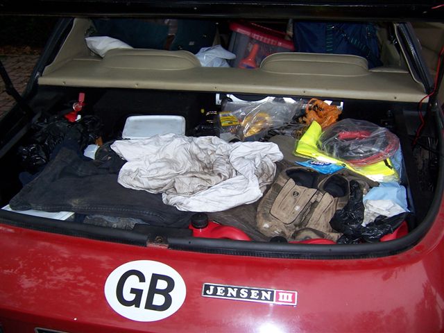 Top Touring Tip 11: Ignore any odd noises from the car. It WILL be all right! Well here we are. After 18 months of planning, saving, and getting the car ready, it was time to go home. It had been a long gestation for a relatively quick and painless birth, with only the forceps delivery of the gearbox to add a little drama. We didn't even need the smack on the arse. We sat in the conservatory of the Astoria hotel in Ghent a little dejected. It had been such fun, and such a good time that going back to day jobs and the real world was not going to be easy. Why couldn't we win the lottery and spend the rest of our lives touring the world in a Jensen? S'not fair! To lighten the mood I told Chris of the first time I had stayed in the Astoria. The owners wife had served breakfast in a leather bustier, leather mini skirt, and thigh length boots, and had been affectionately nick named "Madam Whiplash". She brought the toast to the table and said to my mate Braggy: "Knob of Butter?" Without blinking an eye he replied: "Mind your own Business" We all fell head first into the cornflakes laughing. The hotel owner had a classic Mercedes, but he was hugely impressed by the Jensen and brought his mate out to have a look, so we had a 15 minute question and answer session on the car as we did the pre flight checks. All the fantastic packing Chris had done before we went was now in disarray from the German police search and getting the tools out of the car to fix the gearbox. It was with a heavy heart that we left Ghent and headed for the Channel Tunnel. We used the time to recap on our adventure, and relive some of the things we had seen and done, which reduced us to tears of laughter. We had spoken to Mehmet Payne the night before and he had told us of the awful weather the UK was having. We were still enjoying T shirt weather, so it seemed all the more depressing going home. Still, we had got in flight catering of to a fine art, and Chris did a bit of scoff to cheer us along.