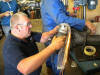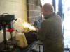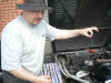 Kev, the resident Appleyard's mechanic, prepares my door catch for