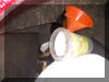 a) Chock the front wheels and jack the rear end onto axle stands. This will lift the rear of the car a few inches higher than the front this is what you need to help get the new oil in. b) Remove one of the rear wheels. c) The drain plug is in the centre of the diff at the lowest point. Remove it and drain the old oil out. This will take a while if its cold as the oil is very thick. d) Replace the drain plug e) The fill plug is half-way up on the rear of the diff; undo and remove it. f) If youre using an LSD conditioner/additive then put this direct into the diff via the filler hole (we use a GM LSD additive) g) Get a 1m length of clean hose (garden hosepipe ideal) h) Put the very tip of the hose just inside the filler hole; this is to make sure you can put the maximum amount of oil in, as you have to keep filling until it comes back out the filler hole. If you put the hose tip right inside the diff you wont get as much oil in. i) The other end of the hose goes up to where the wheel has been removed. Push a funnel into the end of the hose and commence filling. Youll need to prop the funnel in place because it will take a while to pour the thick oil down the hosepipe. Youll see below that we recommend Potato & Leek soup cartons as ideal props; weve had similar results with Minestrone and also Cream of Tomato but somehow we always return to our old favourite Leek & Potato.