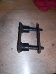 Once everything is in place, you can start removing the spring bolts. I first removed the forward ones, but I think you should actually start with the rear hangers. The rear hangers are actually a kind of U-bolt. Basically, they are two flat plates with a set of bolts welded through one of them. You remove them by undoing both nuts, removing the loose plate and then prying/driving the "bolt plate" out of the spring and body mount.