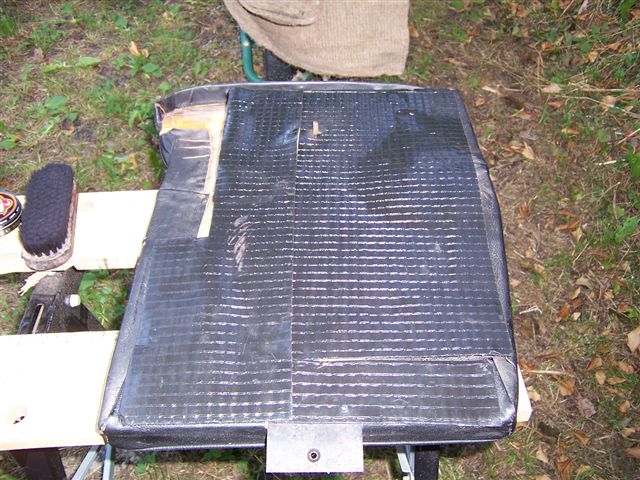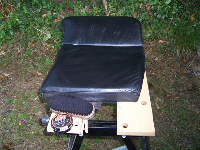 I had decided it was a good time while re-fitting the interior to add some more sound deadening. I had previously used modern self adhesive sound deadening on the backs of the rear seat and the under side of the rear arm rest. But decided to add some good old fashion sound proofing as well. I started cutting it to shape and adding it to the underside and rear of the back seats, and under the arm rest. I had fed the leather with neats foot oil while the car was in the body shop, and given it a good clean with Autoglym leather cleaner, but for a final flourish I used some black boot polish. I had decided that if it didn't move, it would be soundproofed.
