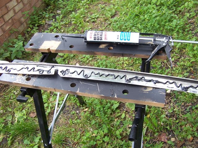 I has bought some previously, and it was a case of marking and cutting them to fit. New one in place. I had found that with the new rear seal, the trim didn't quite fit properly, so I eased it into shape with some wood and a "fine adjustment tool". Take great care when doing this that you do not get to close to the threads under the trim as they will leave a protruding mark in the surface. Once it was all lined up, I added the joining pieces.