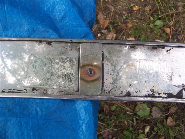 The rear bumper was a little more difficult as there were no holes in the new rear wings for the bumper end bolts, and the inner rear wheel arches had been replaced, so there was no holes in the inner skins either. This was a real "Measure three times, cut once" job, and lot's of masking tape was used to prevent scratches and to be able to mark out on. There is a spacer that goes between the inner and outer skins that requires a 12mm hole in the outer panel to pass through. We drilled the inner skin 10mm to stop the spacer pushing through. You can just make out the rubber between the bumper and the body which the spacer goes through. And the bolt which does from the inner wing through the double skin to the bumper.