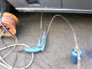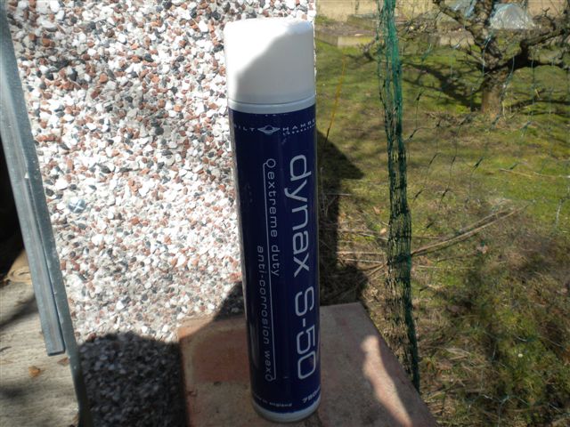 The same was then done in the middle and rear sections. And then the cavity wax can be injected with a high pressure gun Filling the sections The wax is starting to expand out of the holes. A gallon went in each side... Getting in down the "A" post It was then a case of filling the outer sills. Starting to ooze out of the jacking points Next was the new rear wings and arches. The spray wand on the gun at the body shop wasn't very long so I was concerened that it wouldn't spray all the way around the arch to inside the car. I had previously bought some DIY cavity wax which came with a long spray wand, so decided to finish it off at home. The stuff I had bought was from Bilt Hamber. I had bought their rust killer which I had used on the bumpers, and the cavity wax, which comes in large aerosol cans It has a spray wand about 2 feet long, with a 360 degree spray nozzle. It was then a case of pushing the spray wand around the arch and filling it with wax.