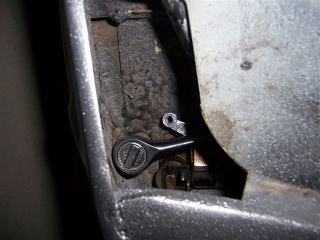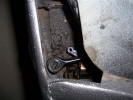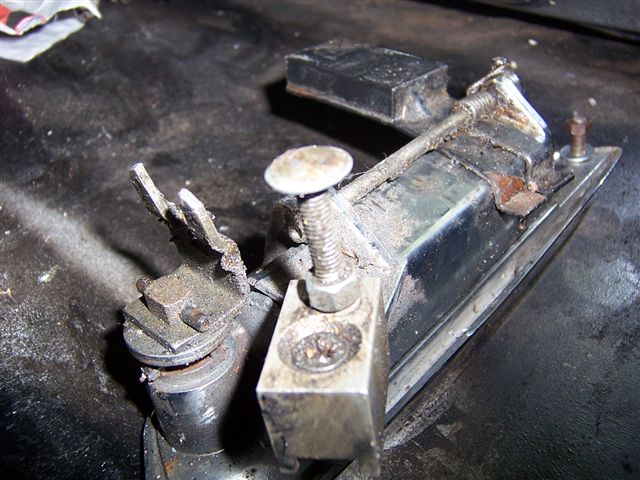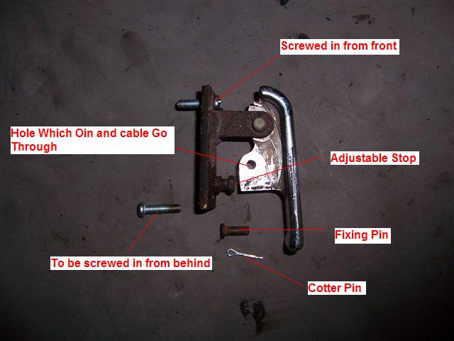 The problem I had was the body shop took this off and I didn't see what screwed it to the body. There are 2 threaded holes in the plate on the left of the picture above, and 2 non threaded holes through the body. My plan was to put 2 bolts through the plate, and then put nuts on them when they were pushed through the body. The problem was that there is an adjustable stop, which can be seen in the picture below, which got in the way of the bottom bolt. My fix was to screw the bolt through the top hole, and then when the top was in place and secured, put the bottom bolt in from the back, so it went through the body 1st. The fiddly bit was getting the pin through the cable and hole in the handle, but it wasn't as bad as I expected, and once I pushed the top bolt through the hole in the body and got a nut on the back, the bottom one lined up no problems. I had everything tightened up before I realised my deliberate mistake.