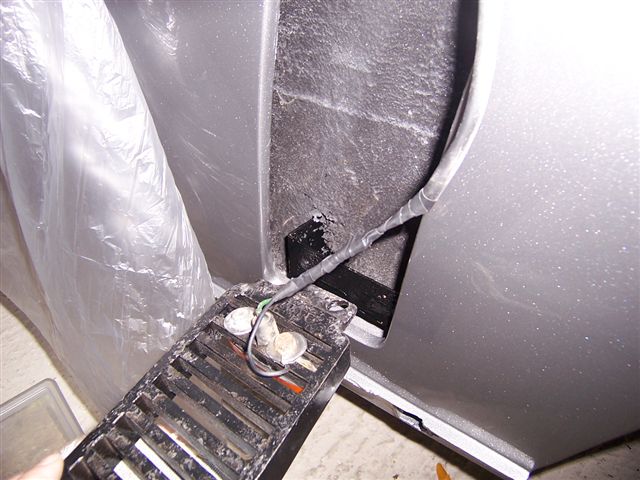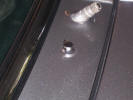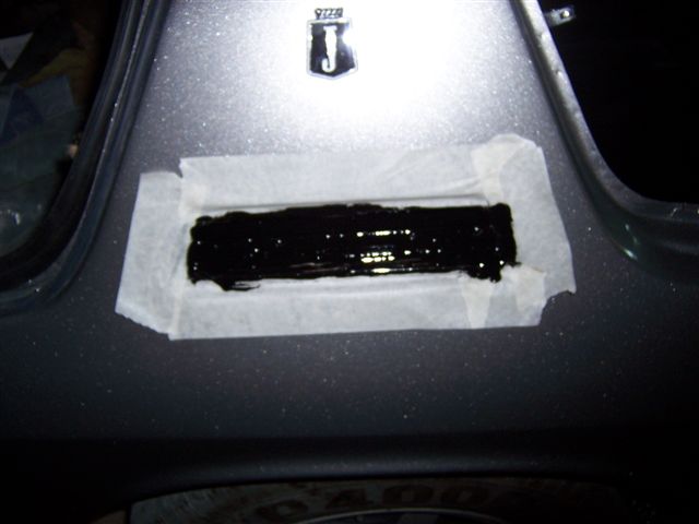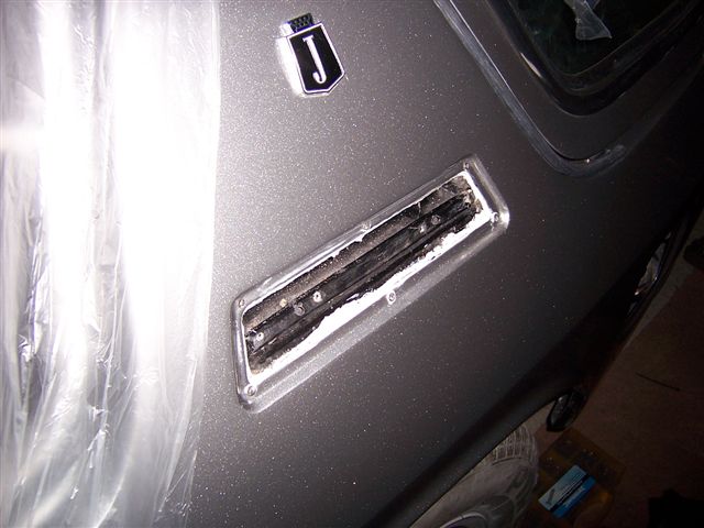I needed to fit the indicators in the front spoiler. I have side lights built into my headlights, so I decided to fit the LHD indicator only units. I used the original metal indicator surround as a template to mark out the new hole. Again, lots of masking tape. I used a 2mm drill, and drill lots of holes as close together as I could around the edge of the hole. It was then just a case of using the edge of the drill to join the holes up. That was enough for the 1st day. Back from a weeks holiday, and I decided to do a little bit more on the car. The old girl let herself down as she wouldn't start when I tried to bring her home from the body shop. 6 months of starting on choke, and driving from one side of the workshop to the other had turned the spark plugs into lumps of coal, so I'll order a new set. I decided to seal the "C" pillar vents as they were heavily sealed from the factory, and sealing them will prevent any water leaking down into the "trap" where the inner arch meets the rear wheel arch, and rotting out your new metalwork. I used a clear bathroom sealer to seal all the way around the air vent (it's white when it is applied, but dries totally clear, and is also paintable so you can give it a coat of satin black).