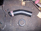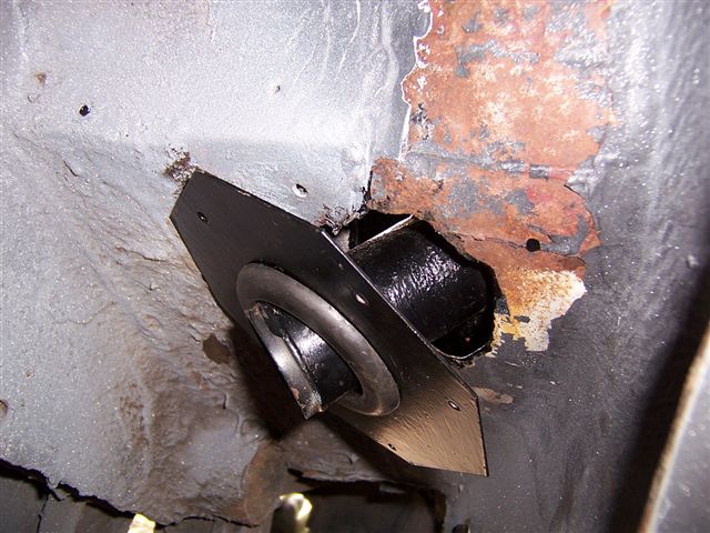 So this meant I had to use a piece of wood and a "fine adjustment tool" to reshape the area of the new inner rear wheel arch. The lower circular hole is where the filler pipe passes through and needed a little reshaping. It was also a good excuse for a coat of satin black paint to freshen things up. I had previously bought a new filler pipe and grommet for the pipe to pass through And while I had the paint brush out...