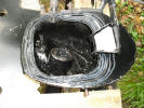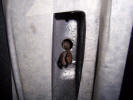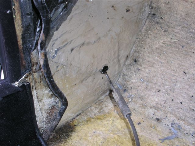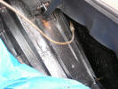 Next was the fuel filler pipe and plate. The old one had been cut out during the fitting of the new inner wings, so it was a good time to buy a new pipe and grommet as well as the plate The hole needed to be eased out in places to allow it to fit and will be sealed with mastic afterwards to make it water tight. Once it was completed, it was time for some fresh underseal. Meanwhile at the front end I have fitted some stainless steel mesh to the air inlets in the front spoiler. I had now got to the job I had been dreading, and to be honest I had been phaffing about and putting it off. "What job is that?" I hear you cry. "The boot release handle" is my reply... It lives in a recess in the door jamb and is fiddly to say the least, but I have come up with top tips to help you to do get it done. I bought a couple of books which were invaluable. The first is "Advanced Swearing in 42 Languages" as there are just not enough English ones, and " How not to loose your temper and attack your car screaming BANZAI!", which was invaluable. If anyone wishes to borrow them they are in excellent condition other than for a few stab wounds and teeth marks. The recess for the handle with the cable in situ.