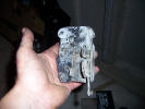 It was time to re-fit the door handles, but before doing that I masked off the C pillar vents, and gave them a coat of satin black paint And added some sound deadening into the inner rear wings (behind the panel with the rear speakers) And vent under the windscreen masked and ready for refitting It is a real pig of a job refitting the door handles, and there are lot's of very sharp objects on the back of the handles, so lot's of masking tape around the hole (I used a double layer as the catches are so sharp on the rear. The first thing to do is remove the counter weight. Then remove the adjustable striker and the block it's held in with