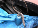 There is a bar for each side of the hatch, and another along the top of the hatch where it meets the roof. This needs to be slightly lower than the sides so you don't have the seal sticking up above the roof. You will also need to cut the flat part of the seal away around the hatch hinges to allow the hatch to lift up. The seal that goes all the way around simply fits over the edge of the metal work around the hatch, and can be knocked on with the flat of the hand or a rubber mallet. Take care it has a metal "spiral" in the round part of the seal, which has sharp ends where it is cut that can scratch paint. If your budget can run to it, then use new seal for the front and rear screens as: a/. If you don't it's a ready made excuse for the window fitter if they leak. b/. They look good. c/. Your old ones will probably be knackered anyway. You may be able to fit them yourself, but it took 3 fitters to put the rear screen in (it weighs a ton), and the specialist tools and sealers will make a much better job. I had the break the old washer jets to get them out as they had rotted in, so I splashed out on a new set. The drivers side was easy to fit as there is plenty of room behind the bonnet latch to get your hand in to tighten it up. The passenger side was not so easy. I'm not sure if it was factory, or a PO had done it, but there was a slot cut in the glass fibre surround which allowed me just enough room to get in. The silver bar running horizontally in the picture is the bonnet release rod.