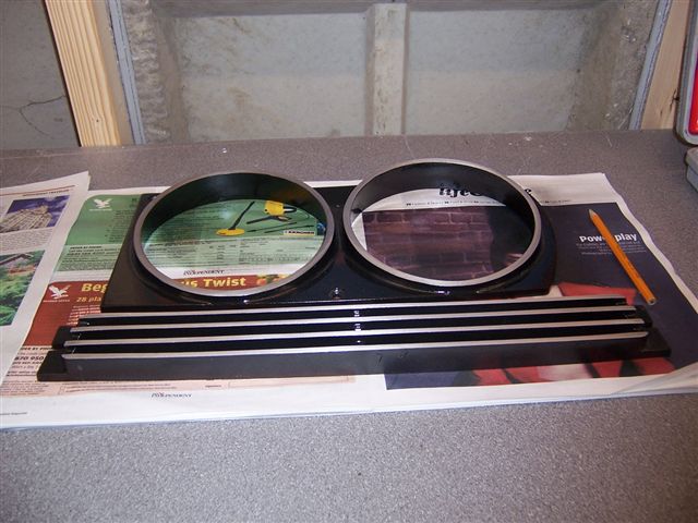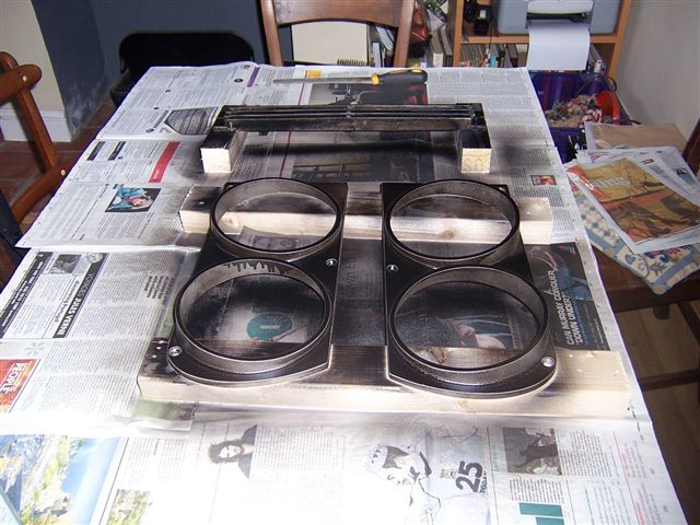 Meanwhile... I had taken out the grille, wing vents, etc for cleaning and painting. Steve Payne has a small grit blasting cabinet in his garage, which I used to remove the old paint from the vents etc. This left them spotlessly clean and ready for paint. The secret is to paint them, then use a file to remove the black paint from the areas that are meant to be silver. Next, the grille needed to be stripped down, so I set to it. Warning! This section is not a 5 minute job, and will probably result in breakages, so don't start it the day before you are going to a show!!