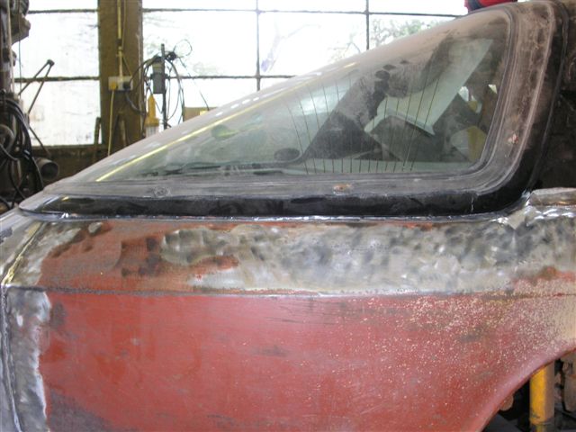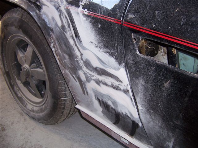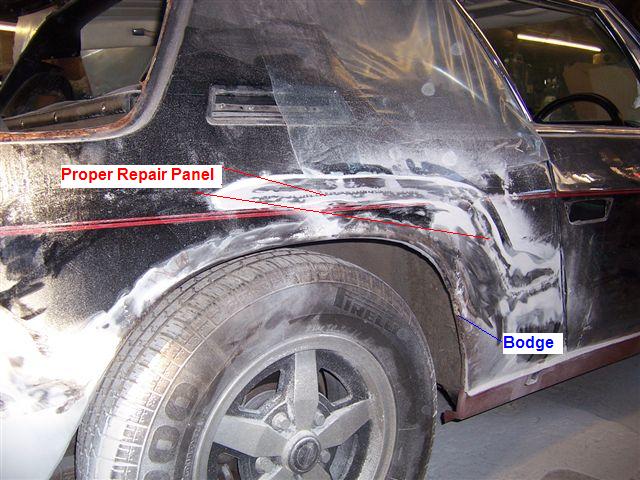 2 previous repairs to the rear wheel arch. A full repair panel (the line that goes all the way to the door) and a 2nd section added later (the line that starts just above the sill). Tim, the owners of the body shop, asked me to come and have a look as he had done more investigation work. It revealed the bodges the last body shop I had used... Other than the bodges being annoying, it was generally pretty good at the rear, but I decided to have all new panels from door to door at the rear, so a visit from the plasma cutter was booked in... The news was better at the front, with all the bubbling being filler lifting rather than bad metal. When the car had changed from it's original yellow to black, it has received a full bare metal restoration to a very high standard. So much so it has lasted over 25 years. All the metal in the front of the car is in good order, so other than removing the "rippling" that you get in older cars, the front of the car is sound.