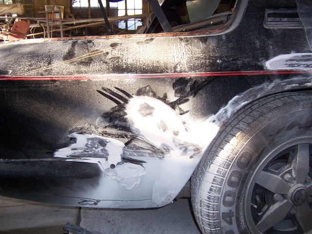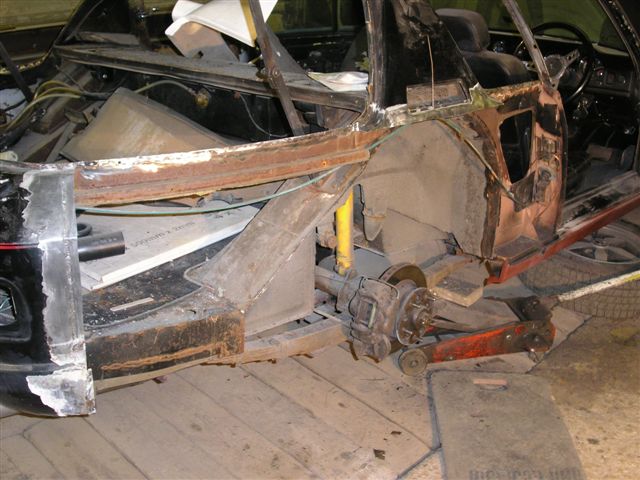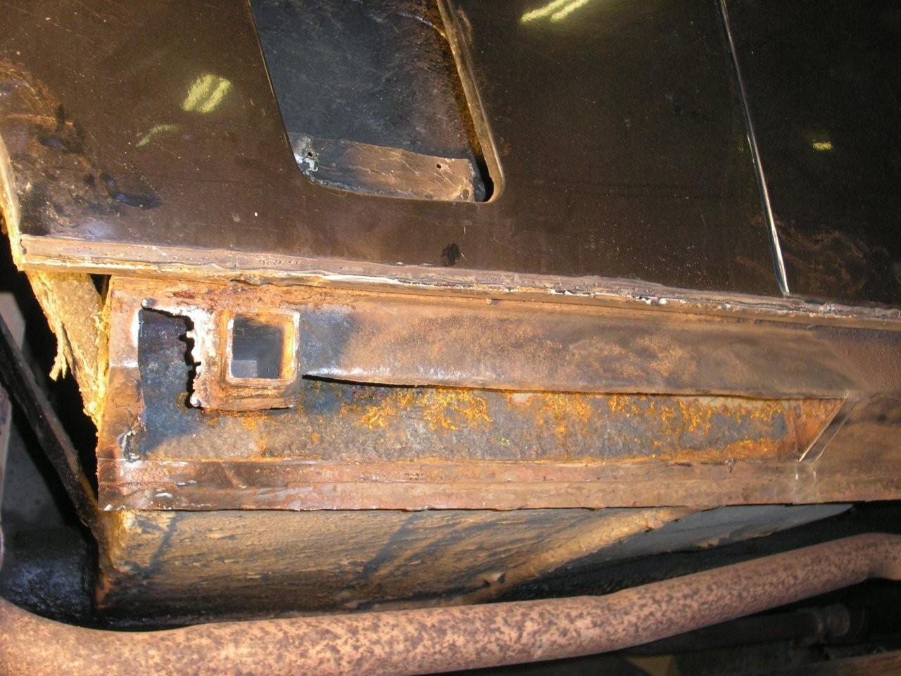 I received some new pictures of the investigation work going on with the car. It has revealed more old repairs, and given us an idea of what needs doing.