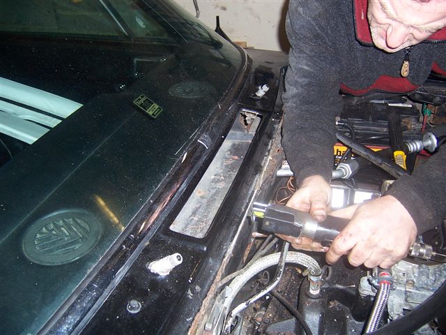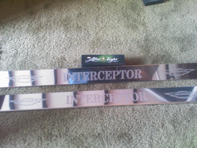 As most of the mechanical work has now been completed (I say most as it never really stops, does it?), it was time to get the body work sorted out. The bonnet has never really fitted well, and the doors and rear wings were starting to bubble, so time for some new metal and TLC. It was also time for a colour change. I loved the car in black when it was clean and polished, but that was about 4 minutes a year. Living on a farm, and the colour black in general is not easy to keep a car looking clean and tidy. It also shows every scratch and ripple in the metalwork. I spent a year looking at colours. I never realised that most car colours were so uninspired and even boring. I considered all sorts, including Audi "Solar Orange", but discounted them on grounds of taste, or sheer horror. In the end I settled for MG XPower Grey. It has a very slight pearlescence, which doesn't cause a colour change, but adds a depth to the colour. A date was arranged for the car to go to the body shop, and the work to strip the car began at Steve Payne's place. Removal of the rear Jensen Badge The aftermath of the battle to remove the Jensen badge Bubbling rear wheel arch Wing vents removed Front Bumper and headlight surrounds removed Cracks in the paint on the front wings you usually get on Interceptors Lead loading bubbling under windscreen surround Removal of vent under windscreen First remove heat shielding from around heater This reveals a metal plate held in place by self tapping screws (should be 5 in total). This then gives you access to 2 8mm nuts at the end of the vent. Removal of the stainless steel rear window surround. BE CAREFUL with this as the fixing bolts that hold it in place were hand fitted for each car. Mine had been located with masking tape so they didn't move, but if they are not and the do move it will ne a nightmare to reposition them. Rear surround a seal removed Window seals and chrome surrounds removed. Door handles removed Steve Payne removing my door mirror with an air saw. Too bloody idle to look for a spanner :0) And so in it's very sorry looking state, it's went to the paint shop. I had decided I needed some new bolts to hold the stainless steel rear window surround, and that a new rear hatch seal was in order, so I ordered them from Andy Brooke's at Appleyard's. Being the super smooth salesman that he is, he persuaded me I need these beauties as well...