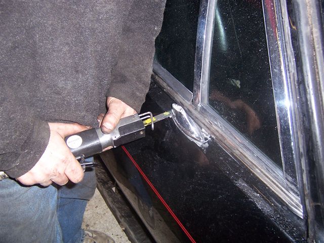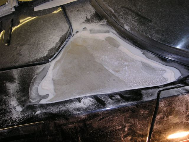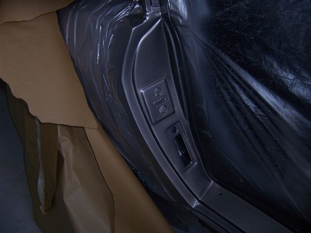 Once the painting was done, it was corrosion protection time. I used the body shops high pressure air line and cavity wax injection spray gun. Each sill got 1 gallon of Wax-oil. This involved drilling holes to allow the spray nozzle to get into the inner and outer sills.