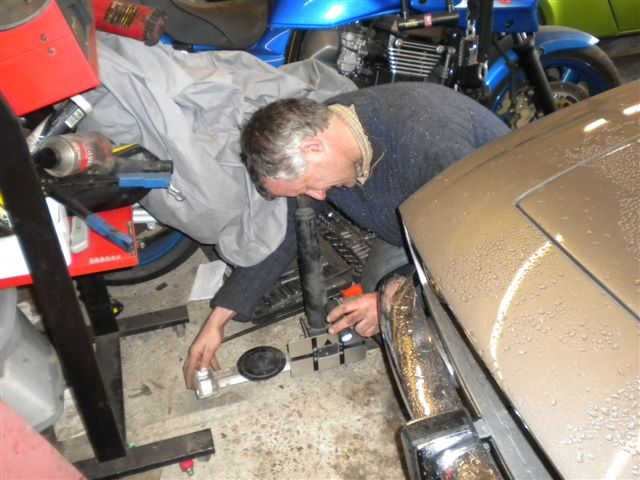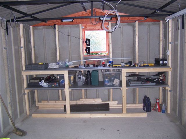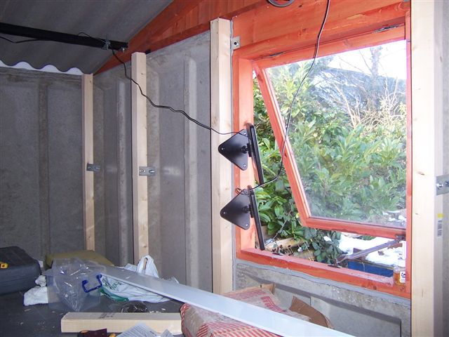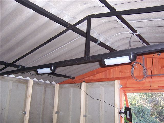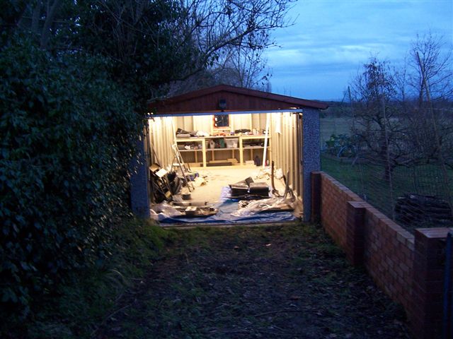 And now, a short interlude... I recently had a new garage built, and it seemed a good time while the car was in the body shop to get some work benches built, and some lighting and power installed. Chris Miller braved the sub zero temperatures of the worst UK weather for 18 years to come over and get stuck in. I had previously been using re-chargeable solar lights to work by. Not great as they are only meant for small areas, but were magnetic and attached themselves under the bonnet and wheel arches very well.