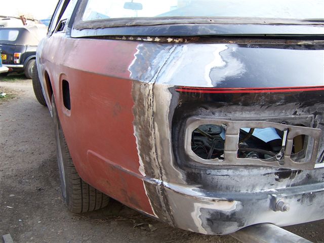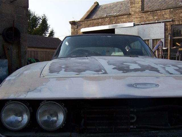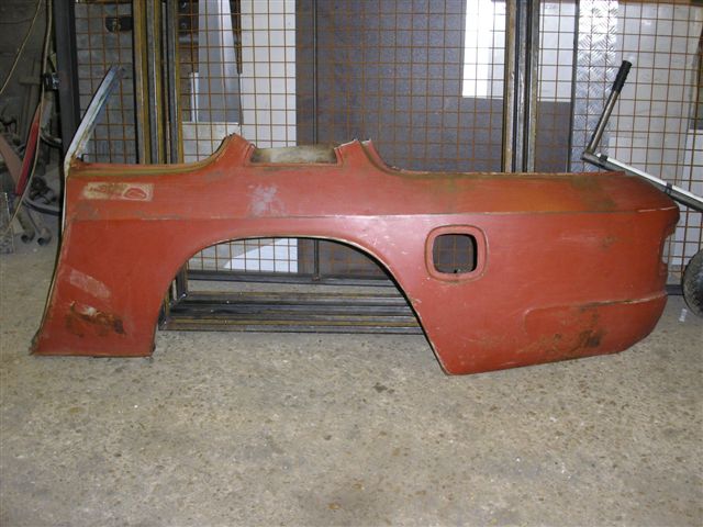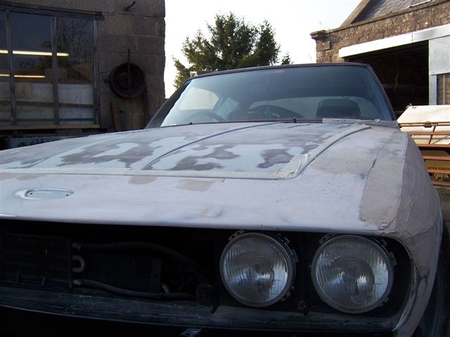 This very quickly removed the old paint and left a nice flat surface to paint on to. One they were cleaned up, they were ready for painting I am now going to buy some stainless steel threaded rod to replace the original mild steel. It will also mean having to drill out the spacers which have broken rods still in them. These turned up today and got me worried... You can see how the inner wheel arch is attached to the outer skin. Mud and water can get in between there panels and this is what causes the classic corrosion of the rear wheel arches on Interceptors. This is going to be filled with cavity wax after the paint work is complete. It can't be done before as the wax will spoil the paint finish. New panel welded in place. The next part of the job is to remove and repair the doors and fit the new hinge pins so they open and close smoothly.... I decided my other "Jensen" needed a colour change as well, so it was time to start stripping it ready for paint.