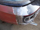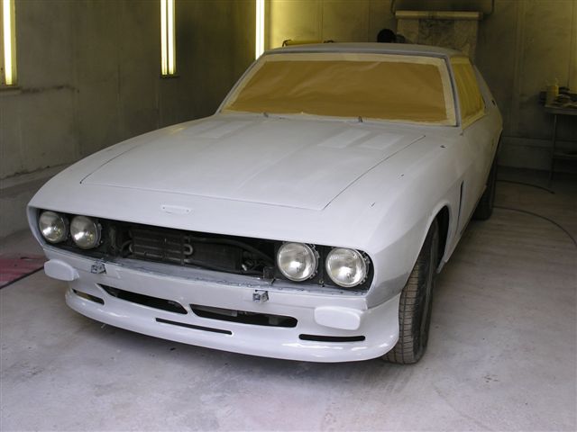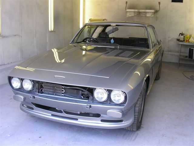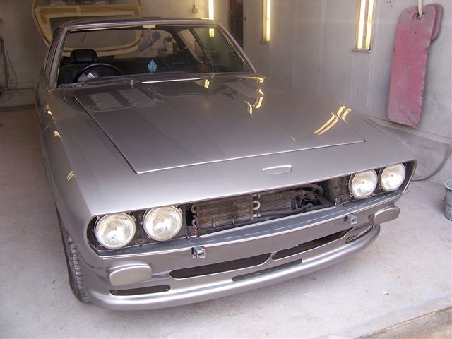 I mentioned the possible new paint colour, and out came the paint samples booklet. We took it outside and bent it over the rear wing of a Daimler Majestic they are restoring so we could see how it looked over contours, and how it reacted to light. In some lights the Telestio looked a little too dark, but I could see where Chris was coming from. But then I spotted "Lamborghini "Grigio Antares", or titanium grey. This was lighter, and I thought very similar to an Aston Martin Vanquish I had passed earlier in the day, and much admired. How much like is "very much" as it turns out the Aston colour is Grigio Antares. So, decision was made, and work pressed ahead. Tim from the body shop sent me the latest batch of pictures. YE GODS!