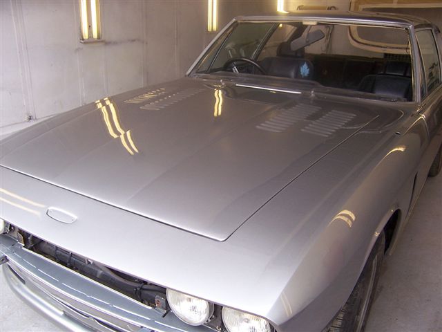 Nothing to report at the moment as the paint sprayer was only just back from holiday, so I took the opportunity to refurbish the inside of the bumpers. I gave the flat sections a good rub down with a wire brush The wire brush was no use on the curved and tricky areas, so I used a kitchen scourer which was just as effective as the brush Chris Miller put me on to Bilt Hamber anti corrosion products which I have been using and have been very impressed with. I gave the inside of the bumpers 2 coats with Deox Gel to kill any corrosion. After I was happy all the rust was treated I gave the insides a few coats of satin black Hammerite. Don't just paint over rust with this as the corrosion will just continue under the paint. The finished item. Well, were into the end game now, and Tim from the body shop sent me these pictures, and asked me to come over to finalise things and make sure I was happy with the colour. So armed with my camera I went for a look. Due to the light and the weak flash on my camera, the pictures have come out a little dark. Well, it's taken 6 months, but here we are, painted. They have not worked on the car continuously, but it's been a long old slog, and it's nice to see the end result. I am really pleased with the colour. Just as well as it's got to last a loooooooooooong time :0) It's difficult to get an accurate impression of the colour with the camera, but to me any way, it suits the car, and is beautifully applied. They got the paint manufacturer in to advise on it's application to ensure it was just so.