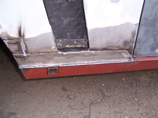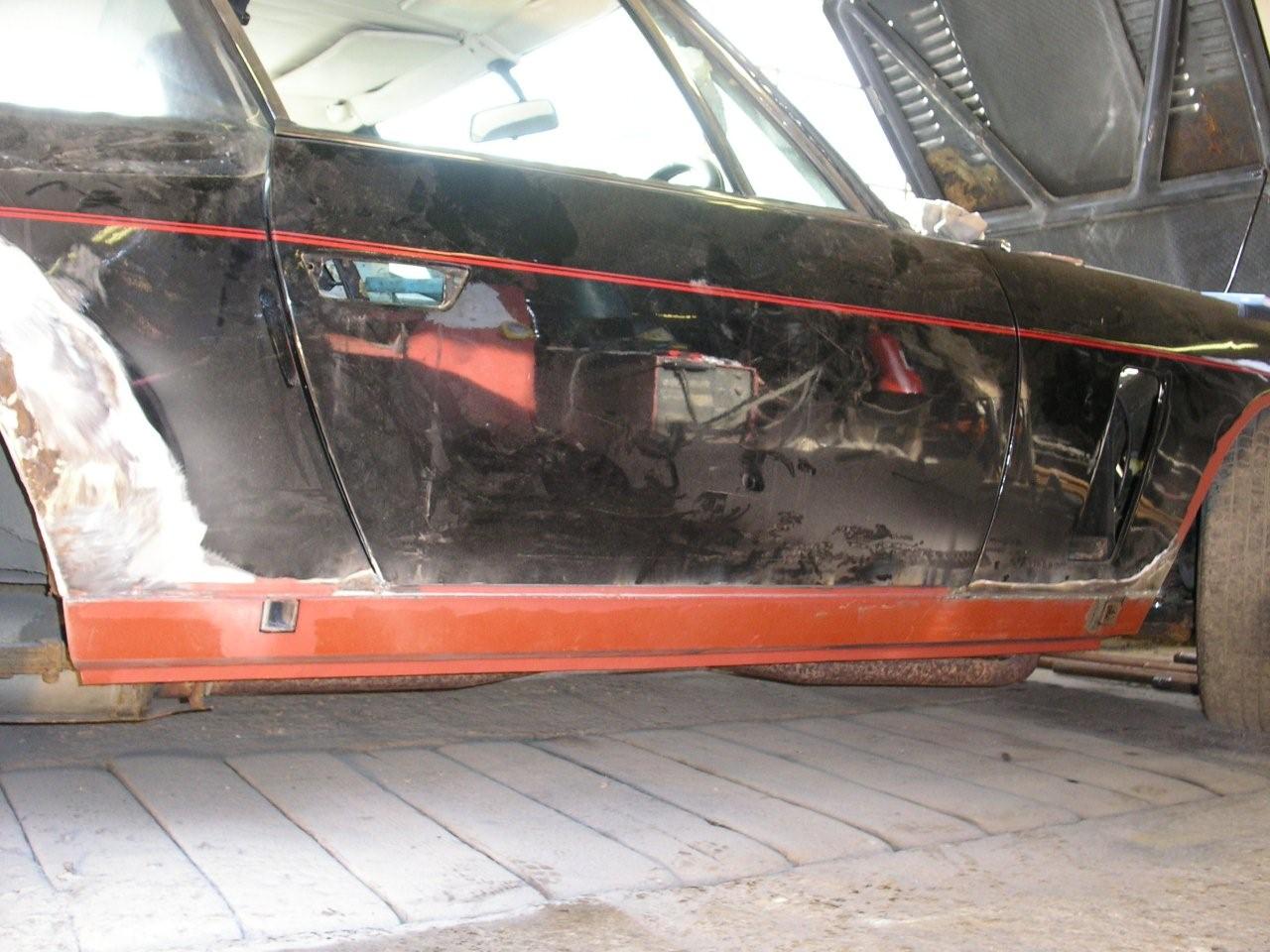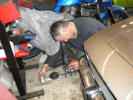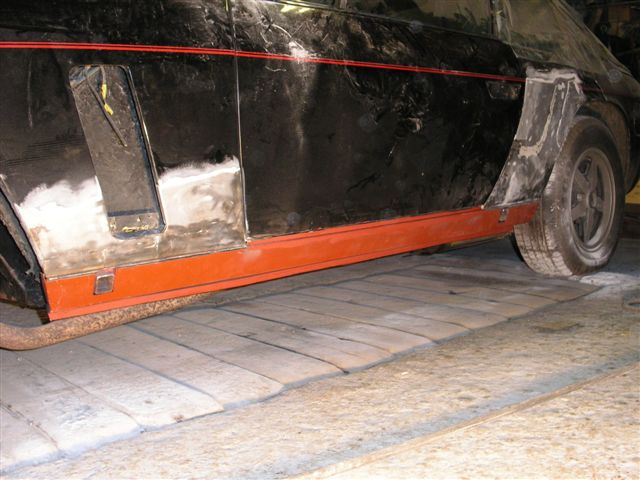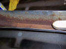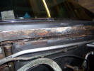 Inspired by the super bling kick plates, I sent my wheels and bright work to the polishers. Wheels after a good polish Bright work looking good The concours crew won't know what hit 'em... The first pictures arrived today from the body shop. When we stripped the car of it's stainless steel sill covers we found the outer sills to be rotten. I ordered some new ones from Andy Brooke, but I have been dreading the old ones being taken off and finding the inners being rotten as well as it involves major surgery. I saw Steve Payne's car with the inner sills removed when he had his car done, and I honestly though the car would never see the road again there was so much of the car missing...
