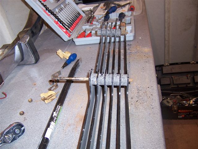 The threaded rods that run through the grille are mild steel, and these had corroded with the aluminium spacers. This meant some snapped off rather than undoing. You will end up with this sorry collection... All of the sections are of different sizes and shapes