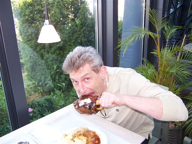 We entered France just after 6am, on a bright, warm sunny morning. This was going to be good! I took the helm of 136-8801, gave it a boot full, and we were on our way. Only 4750 miles to go. The drive in France was short but sweet and we were soon into Belgium. Belgium is the beer brewing capital of the world and it was a tough decision not to drive into the nearest beer cafe, get blind drunk for 2 weeks and Photoshop the pictures (I know the German's and Czech's also claim the title of being best brewers, but sorry lads. Get your self a glass of Westmalle Triple and you'll see my point of view) Belgium soon rolled into Germany, and we were surprised to see how wholeheartedly the German's had adopted wind turbines. There is a huge debate in the UK about the merits and de-merits of wind power (usually regarding how the turbines affect the look of the countryside), but to my eyes they didn't look to unsightly, and surely the environmental benefits must out weight the negatives? Answers on a post card to... Chris had previously lived and worked in Germany, and at dinner the night before had mention a popular national dish called "Schwein Haxe" (sorry to our German readers if the spelling is incorrect). It sounded fantastic, and as luck would have it, it was on the menu at the services when we stopped at for lunch.