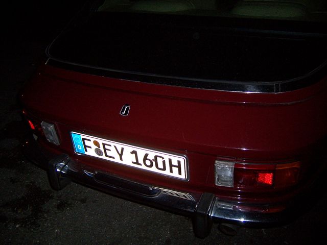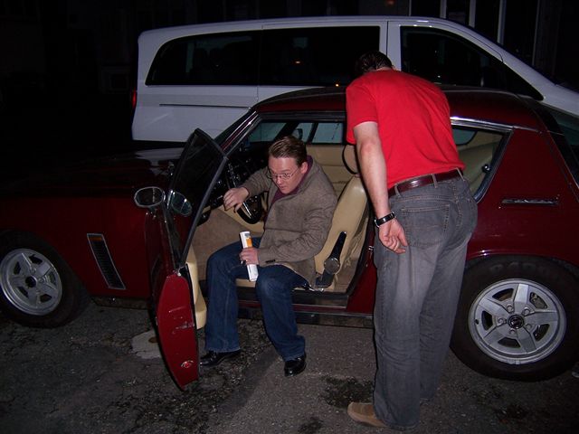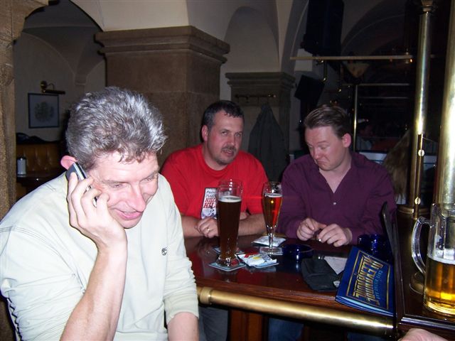 We had heard that German Jensen owner Patric Albutat was hoping to meet up with us, and so we gave him a call and arranged to meet. Going for "a pint" sounds so much better than "fancy 565 millilitres?" It turns out Patric had driven 6 hours and 385 miles to meet us from Berlin, and so we decided to make a night of it and go for dinner and a few beers afterwards. He had brought his rather tasty MK3 with him, and we took some pictures of the car. It was very dark and the flash camera not only gives poor light, and in no way does justice to Patric's car. It turns out Patric is a writer, and we were hoping he might write this for us, but he modestly declined! Unquotable quote: "... those are really woody woods." I hadn't realised how bad the flash was on my camera till I took a look at these pictures, but here a shot of "downtown" Ulm (what exactly is "downtown"?) After a dinner of tapas we headed to a busy pub for a drink. By pure co-incidence my mate Simon was on his way to Bulgaria to see his mum, so he met us in the pub and took this picture of me, Chris and Patric. He also brought packets of the Black Country delicacy, pork scratching, which Patric has now tried and pronounced; "The most disgusting stuff I tasted so far, utterly awful. Much worse than Marmite! Do you think I could make them send me some? Haven't been able to source it locally or over the internet" A little cultural exchange between