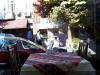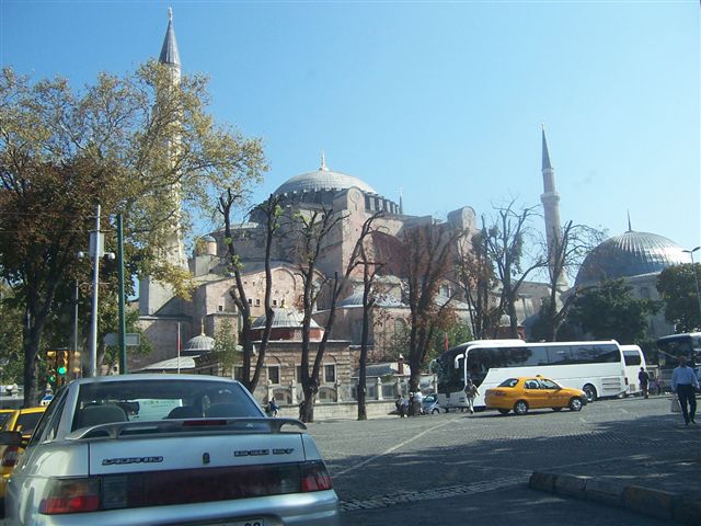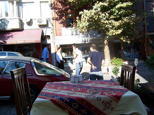 Top Touring Tip 4A: Don't go to a Turkish Barber Just After Falling out of the Pub... Refreshed after a car free day, and with only the worry of having to think of excuses to tell 'er indoors about the carpets, we decided that 1 Jensen free day was enough, and so we would have a tour of Istanbul and retrace our steps in the daylight. A quick peek over our balcony revealed the car was still there, and gave us chance to admire the view. Since we had taken delivery of the new air conditioning drive belt we had hummed and ahhed about fitting it, but we reasoned we had done about 700 miles with one belt, so unless it became a problem we would stick with just the one. It was a savagely hot day, and this would prove be a good test of the new Sandon air con compressor and the cars cooling systems as most of it would be in congested traffic. Part of the reason for the choice of our hotel was the fact the owner had a 1950's Chevy Bel Air, which he would collect you from the airport in if you booked at his hotel. It seemed like a good photo call for the 2 cars. The owner was more of an admirer than an enthusiast, and all technical enquiries were met with a smile and a shrug of the shoulders. He didn't even know the size of the engine, but thought it was a straight six. This looked right as peering underneath there was only one exhaust pipe, which then split into two tailpipes. So we headed out from our area of Istanbul which was called Sultanahmet, and was referred to as "the old town". As we drove around we passed yet more fabulous monuments. And was made to feel welcome once again! We had been experiencing an annoying whine affecting the stereo (we checked the rear seats, but the women were at home, so it wasn't the usual cause!), and so we pulled over to try to move various cable to see if it was noise from the alternator. After a cooling down period, it was safe to try to look inside!