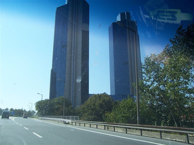 We had previously moved the coil to the air filter box to try to cure the noise, but so far no joy. After a bit of a head scratch and a chin stroke, we concluded it was the Delta fan controller Chris had fitted which was injecting noise into the stereo. As we didn't have any big capacitors to suppress it, we decided there was nothing for it but to turn it up louder to drown the whining noise! Unquotable Quote: "It's a polyphonic syncopation fault..." Istanbul is a huge, sprawling place, and everywhere you can see for miles around there are house and buildings. After being in the old town, we headed into the more modern business side of the city, with some impressive sky scrapers. Some times the old and the new made uncomfortable bed fellows. Unquotable