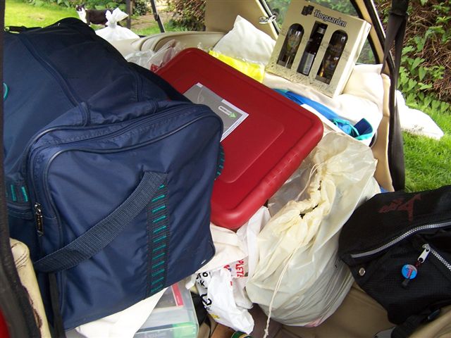 Top Touring Tip 11: Ignore any odd noises from the car. It WILL be all right! Well here we are. After 18 months of planning, saving, and getting the car ready, it was time to go home. It had been a long gestation for a relatively quick and painless birth, with only the forceps delivery of the gearbox to add a little drama. We didn't even need the smack on the arse. We sat in the conservatory of the Astoria hotel in Ghent a little dejected. It had been such fun, and such a good time that going back to day jobs and the real world was not going to be easy. Why couldn't we win the lottery and spend the rest of our lives touring the world in a Jensen? S'not fair! To lighten the mood I told Chris of the first time I had stayed in the Astoria. The owners wife had served breakfast in a leather bustier, leather mini skirt, and thigh length boots, and had been affectionately nick named "Madam Whiplash". She brought the toast to the table and said to my mate Braggy: "Knob of Butter?" Without blinking an eye he replied: "Mind your own Business" We all fell head first into the cornflakes laughing. The hotel owner had a classic Mercedes, but he was hugely impressed by the Jensen and brought his mate out to have a look, so we had a 15 minute question and answer session on the car as we did the pre flight checks. All the fantastic packing Chris had done before we went was now in disarray from the German police search and getting the tools out of the car to fix the gearbox. It was with a heavy heart that we left Ghent and headed for the Channel Tunnel. We used the time to recap on our adventure, and relive some of the things we had seen and done, which reduced us to tears of laughter. We had spoken to Mehmet Payne the night before and he had told us of the awful weather the UK was having. We were still enjoying T shirt weather, so it seemed all the more depressing going home. Still, we had got in flight catering of to a fine art, and Chris did a bit of scoff to cheer us along.