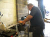 Kev, the resident Appleyard's mechanic, prepares my door catch for