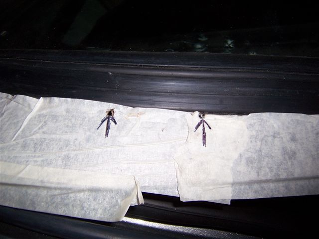Doh! The other side masked off ready for fitting Trim getting a coat of mastic on the back And fitted to the car Right. I don't know why, but I had been putting off the trim around the rear window like a visit to the dentist for root canal work. Don't know why, but it was giving me the ebie jeebies. Any way, it needed doing so as usual lots of masking tape to start with. A lot of the original holes had been lost during the repairs, but luckily some had survived to give me a start. If your having your hatch repaired, then ask the body shop to leave a couple of holes to get you started. It was then a case of drilling from inside the boot outwards, taking care to align the drill so it didn't go off at odd angles. First section fitted And the top section in place I found I needed to fit some new holding pieces as the threads had broken off the original ones.