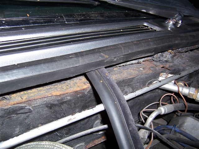There is a bar for each side of the hatch, and another along the top of the hatch where it meets the roof. This needs to be slightly lower than the sides so you don't have the seal sticking up above the roof. You will also need to cut the flat part of the seal away around the hatch hinges to allow the hatch to lift up. The seal that goes all the way around simply fits over the edge of the metal work around the hatch, and can be knocked on with the flat of the hand or a rubber mallet. Take care it has a metal "spiral" in the round part of the seal, which has sharp ends where it is cut that can scratch paint. If your budget can run to it, then use new seal for the front and rear screens as: a/. If you don't it's a ready made excuse for the window fitter if they leak. b/. They look good. c/. Your old ones will probably be knackered anyway. You may be able to fit them yourself, but it took 3 fitters to put the rear screen in (it weighs a ton), and the specialist tools and sealers will make a much better job. I had the break the old washer jets to get them out as they had rotted in, so I splashed out on a new set. The drivers side was easy to fit as there is plenty of room behind the bonnet latch to get your hand in to tighten it up. The passenger side was not so easy. I'm not sure if it was factory, or a PO had done it, but there was a slot cut in the glass fibre surround which allowed me just enough room to get in. The silver bar running horizontally in the picture is the bonnet release rod.